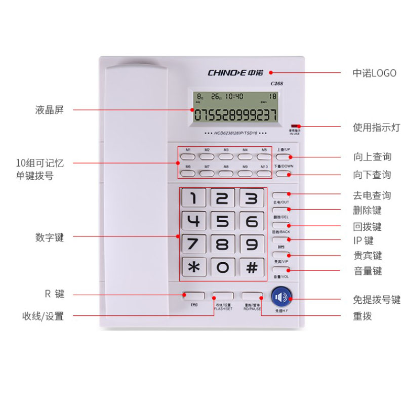 China Noor C268 telephone fixed seat machine for electric display of one-click dial business hotel office holder