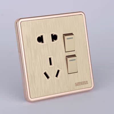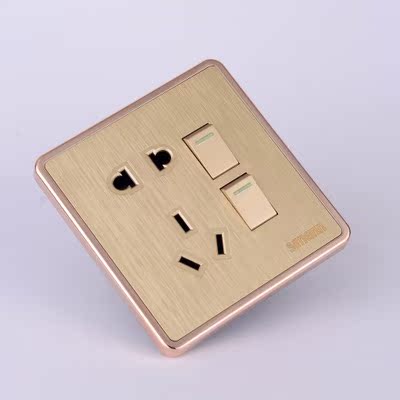 ZhongDe Simon socket switch Champagne gold drawing panel two open five - hole socket with switch 86 type socket panel