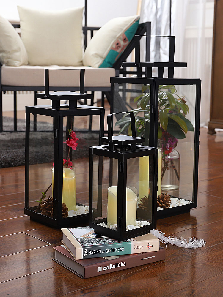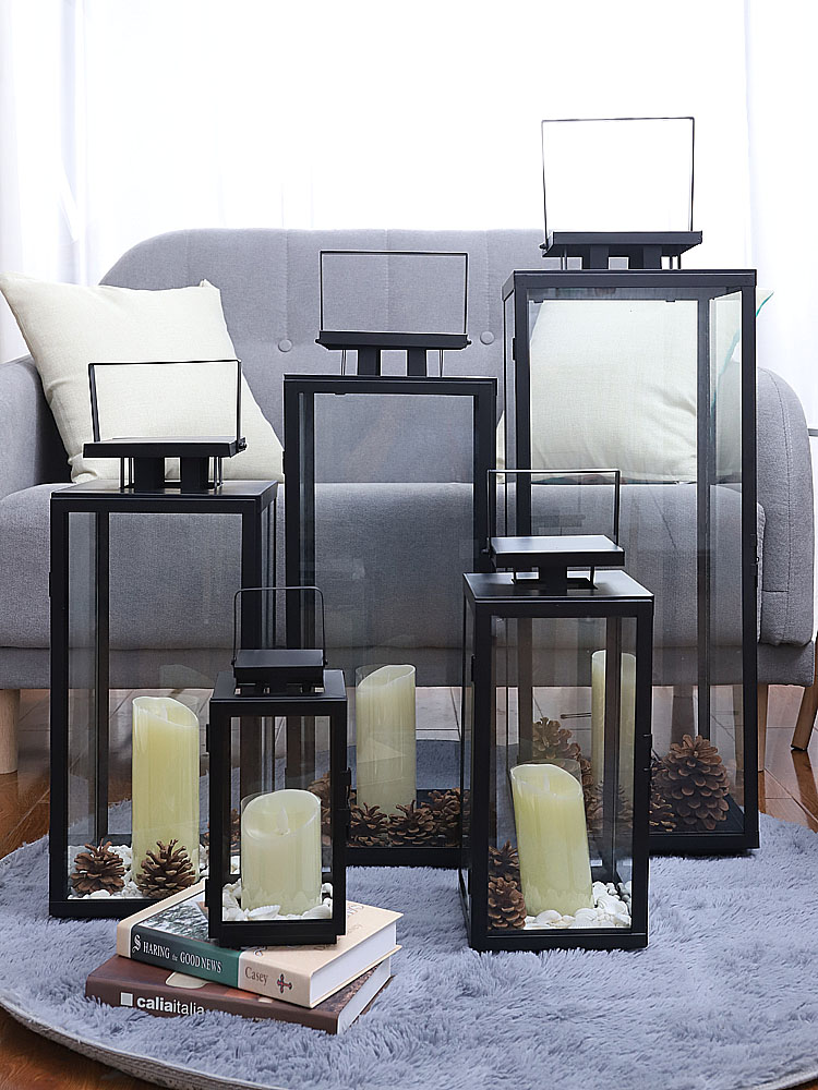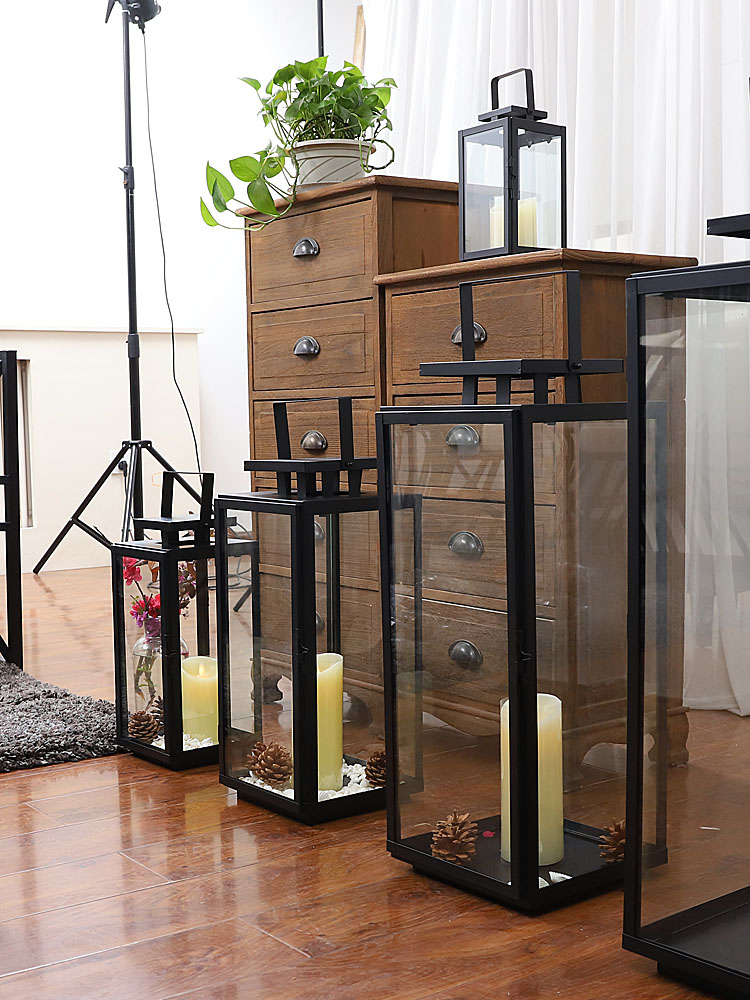 Chinese Simple Modern Retro Iron Glass Windproof Candlestick Courtyard Outdoor Large Wind Lamp Wedding Horse Light