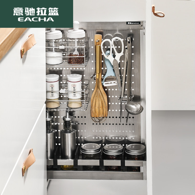 Yichi 304 stainless steel seasoning condiment kitchen overall cabinet drawer tool side pull basket 150 200 with damping