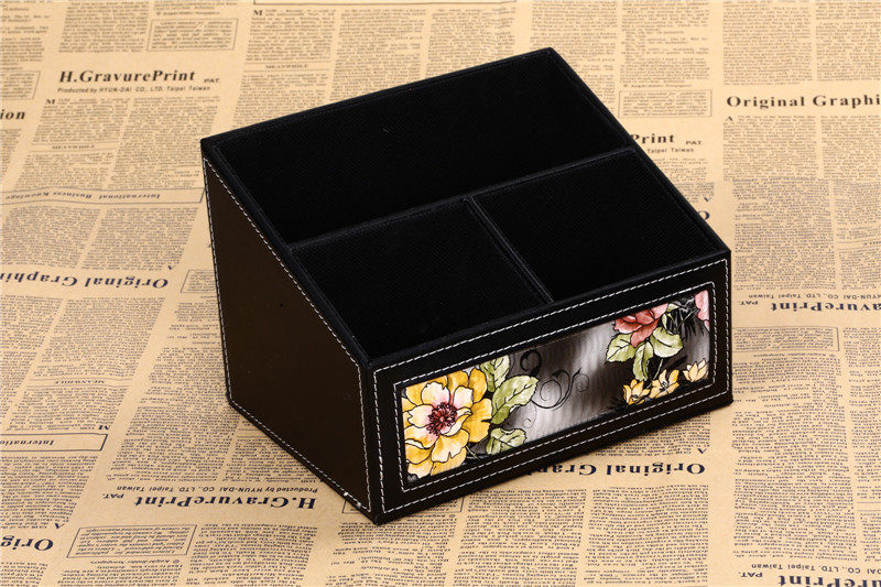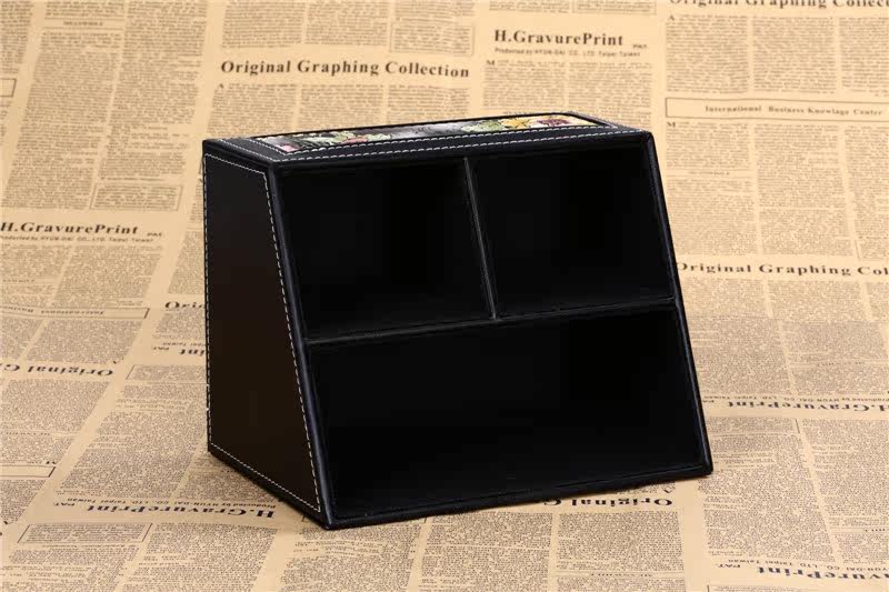 High-end Leather Art Multifunction Stationery Group Box Desktop Black Containing Box Stationery Remote Control Triple storage box