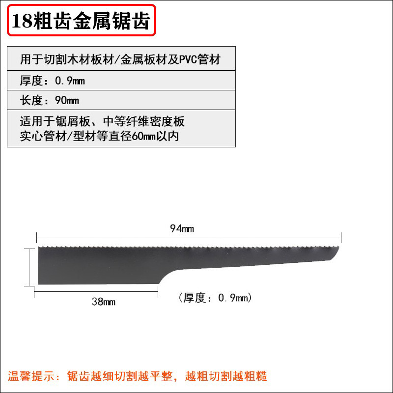 Coarse teeth 18T single strip (saw wood) 24T single strip (saw plastic) fine teeth 32T single strip (saw metal)