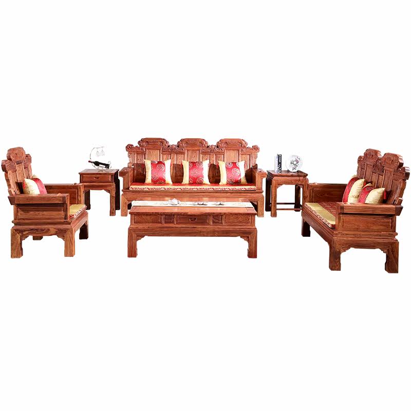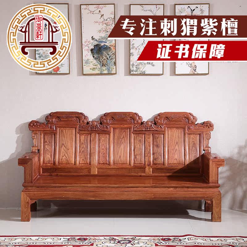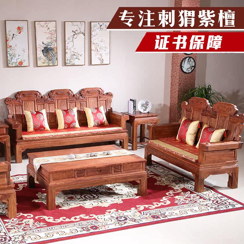 Mahogany sofa hedgehog red sandalwood plain double blessing seat African rosewood solid wood combination living room Chinese classical furniture