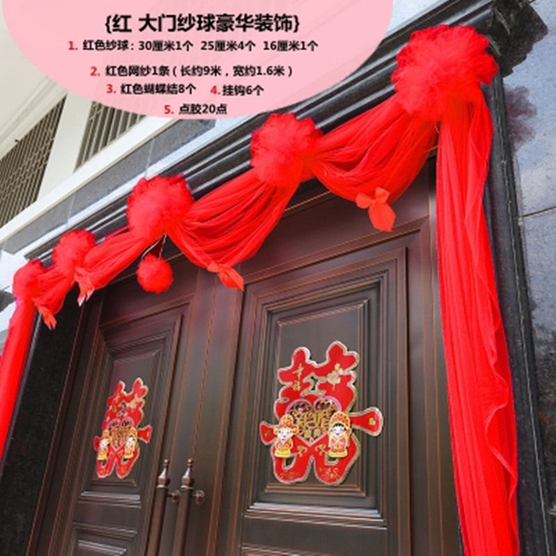 Powder Gate Luxury Decoration Red Gate Luxury Decoration Purple Gate Luxury Decoration Meritocracy Wedding Door Package Festive Red Wedding House Door Package Romantic Purple Wedding Room Door Package Powder Yarn Ball 1 (25 cm) Red