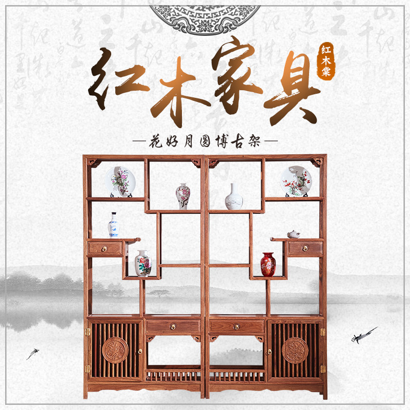 Milan Xuan Red Wood Bogu Frame Solid Wood Pendulum Pieces Chinese Style Living Room Genguan Cabinet Hedgehog Purple Sandalwood Display Cabinet Partition Wine Cabinet