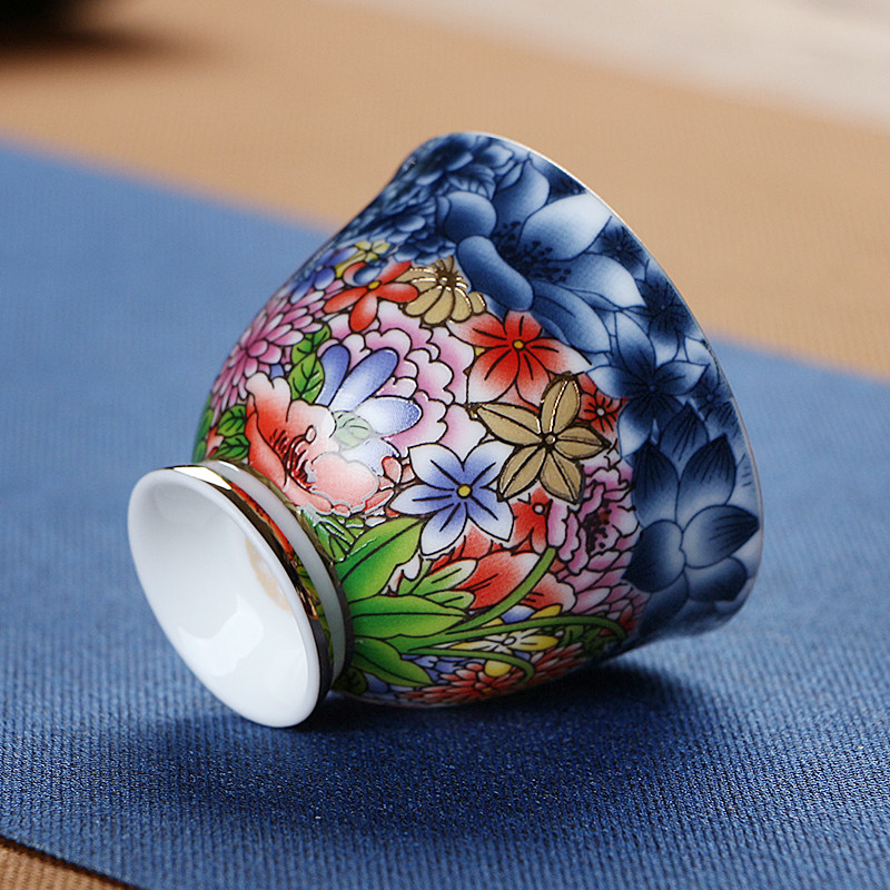 Relief Enamel Color Pint Tea Cup Ceramic Color Glazed Porcelain Personal Cup Single Cup Kongfu Tea With Master Hand-painted Small Tea Cup
