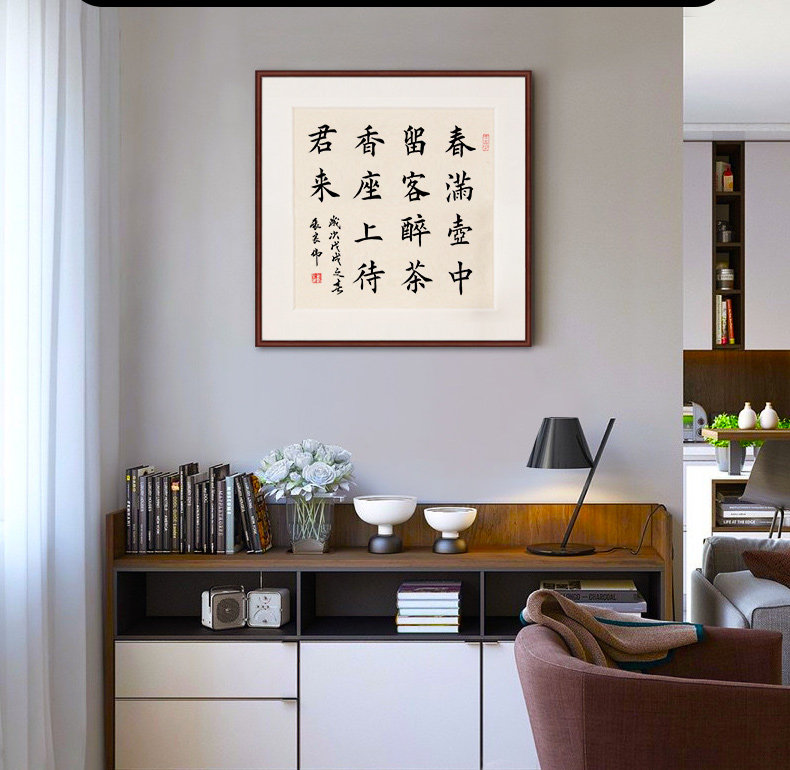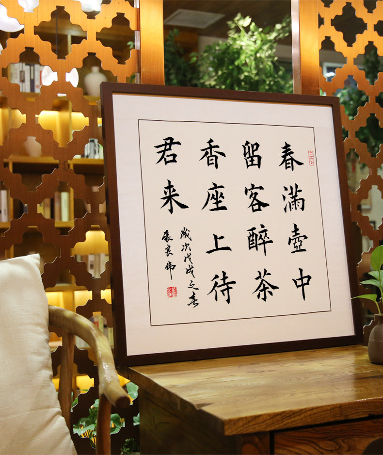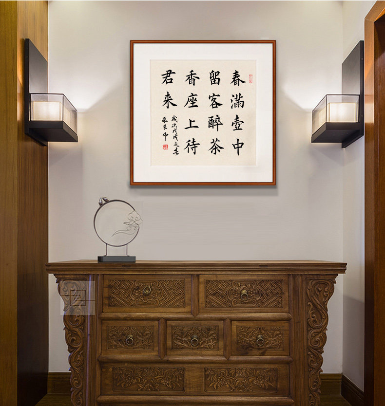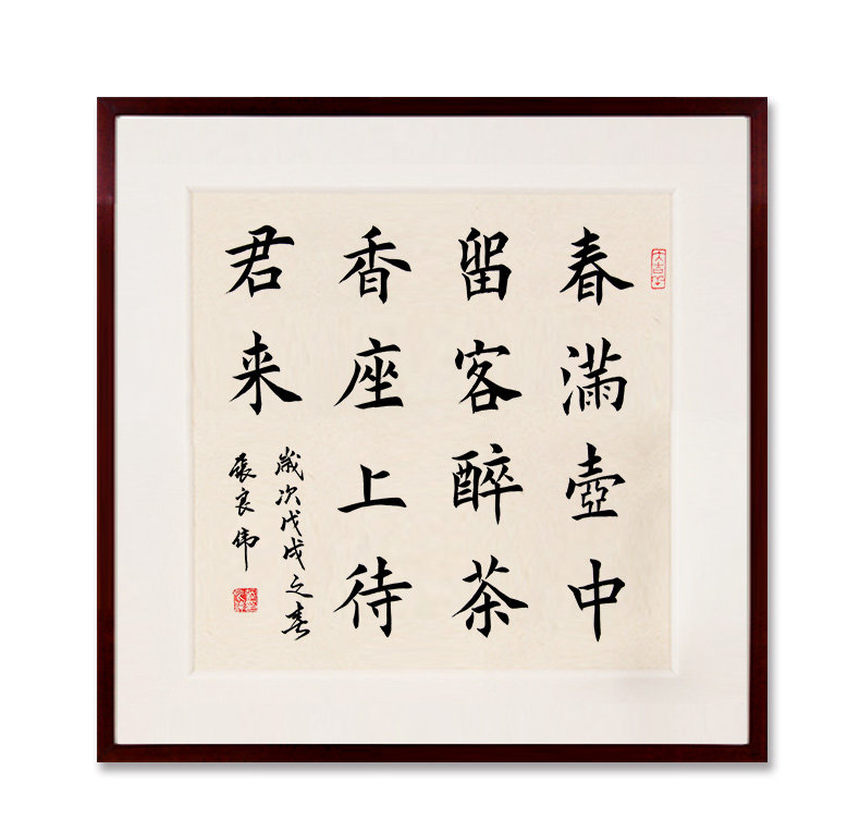 Spring full pot, guest drunk tea, calligraphy, calligraphy, painting, Doufang Office, study, real work, framed, Ou Kaitian, Ying