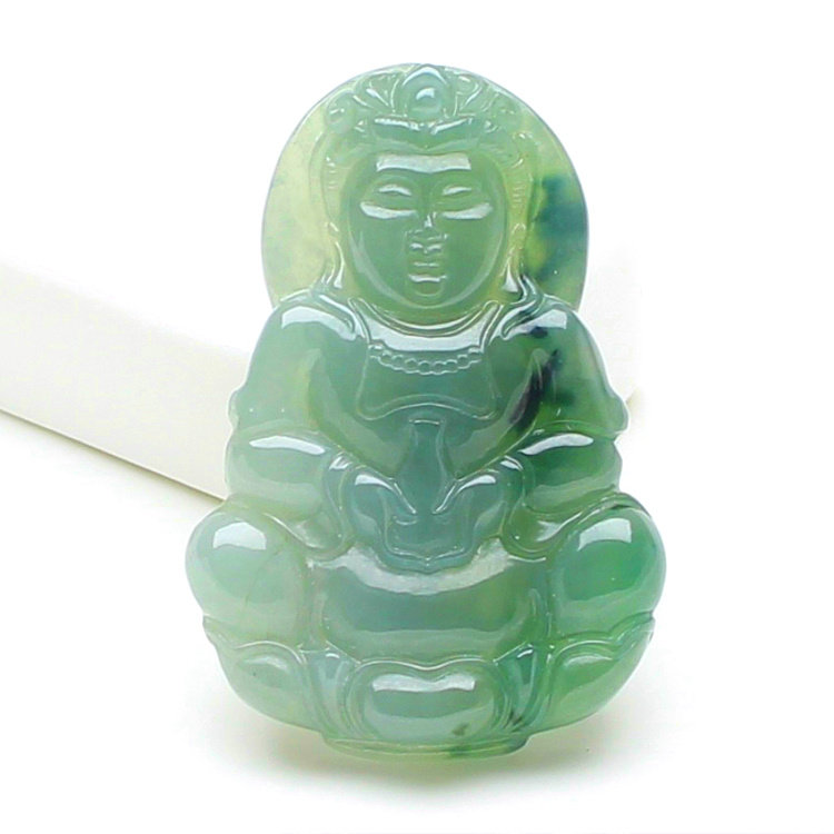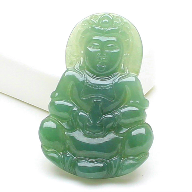 Natural old pit A cargo oil green jade jade Guanyin pendant Burmese jade pendant men's floating flower Guanyin belt certificate