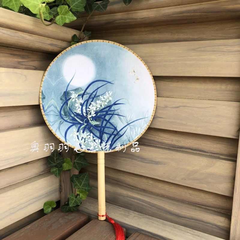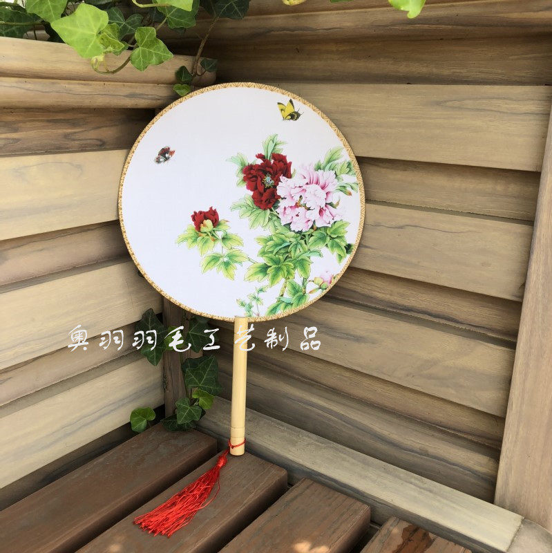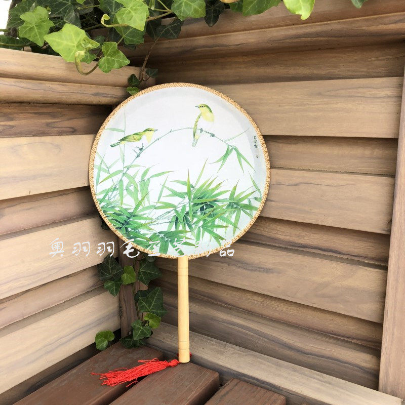 Classical Palace Ensemble Fan China Wind Single-sided Palace Fan Retro Crafts Bamboo Handle Round Fan Hanfu Dance Fan