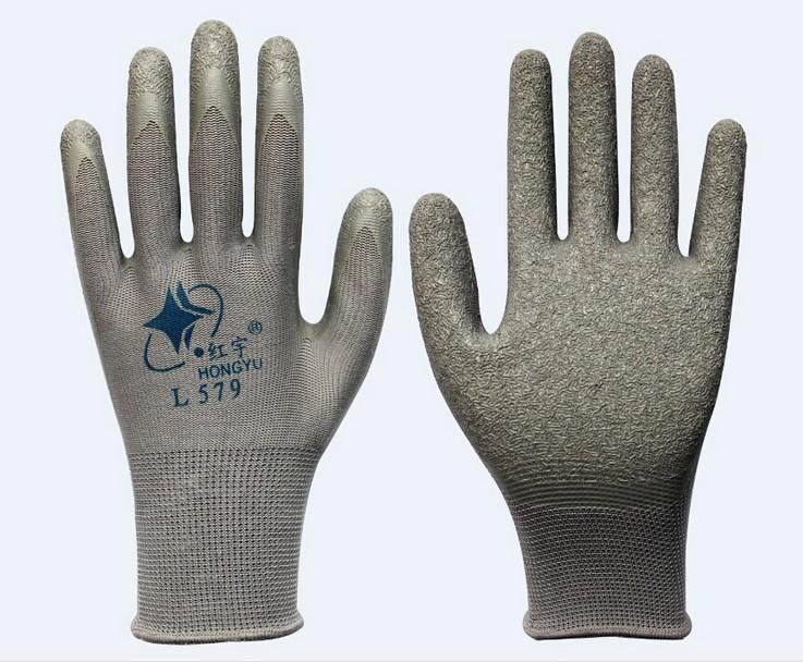 Xingyu Hongyu L579 labor insurance gloves nylon latex wrinkled gloves industrial machinery breathable non-slip wear-resistant