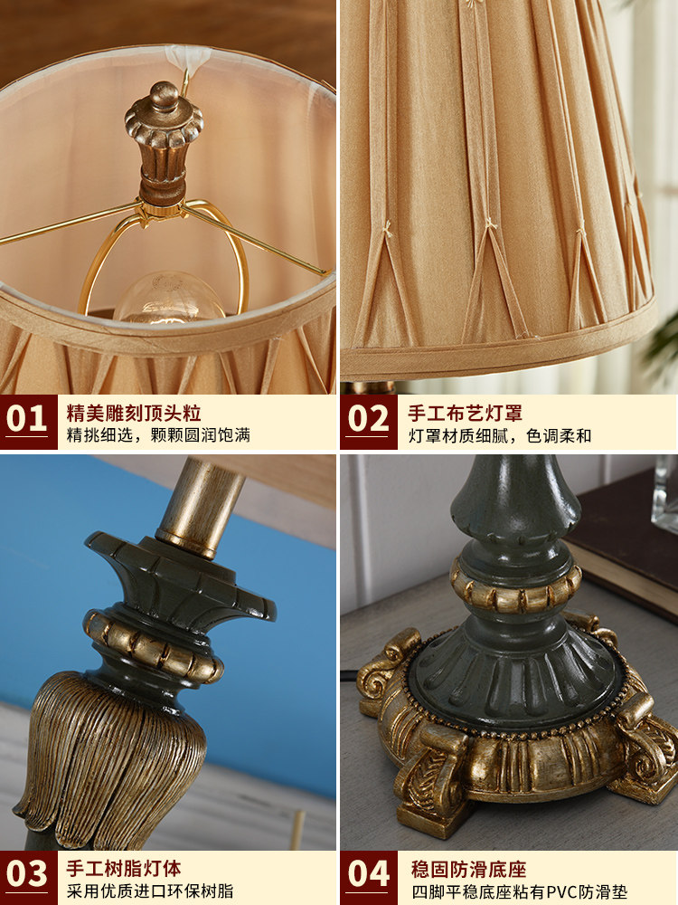 Creative American desk lamp retro living room European style study room romantic pastoral bedroom decoration warm and dimmable bedside lamp