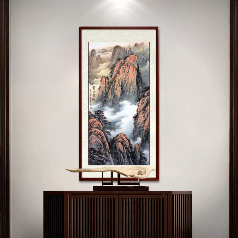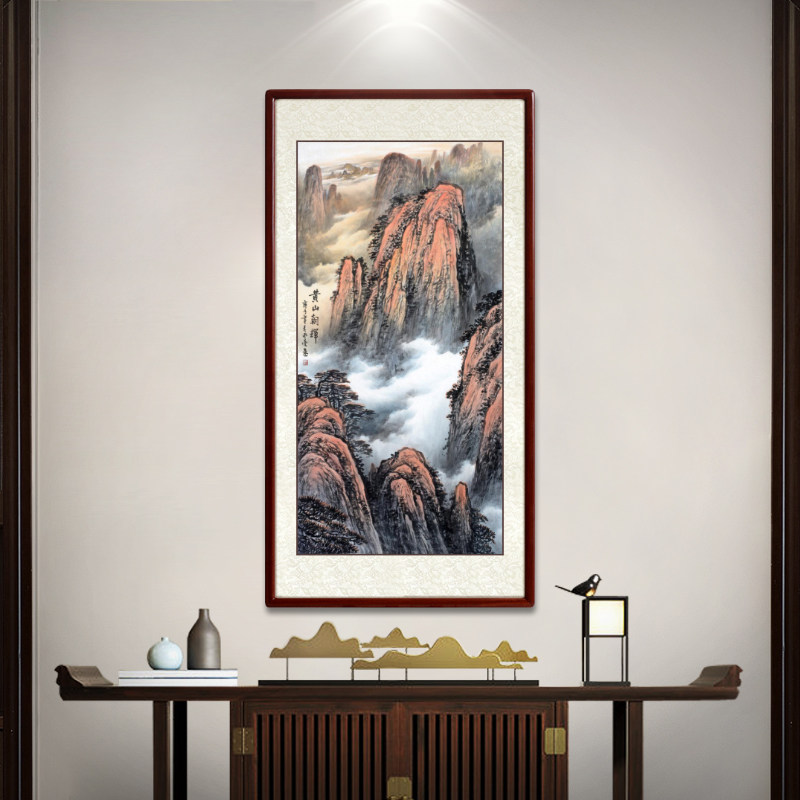 Landscape painting hand-painted Chinese painting vertical version waterless backer living room decorative painting office hanging painting vertical porch landscape painting