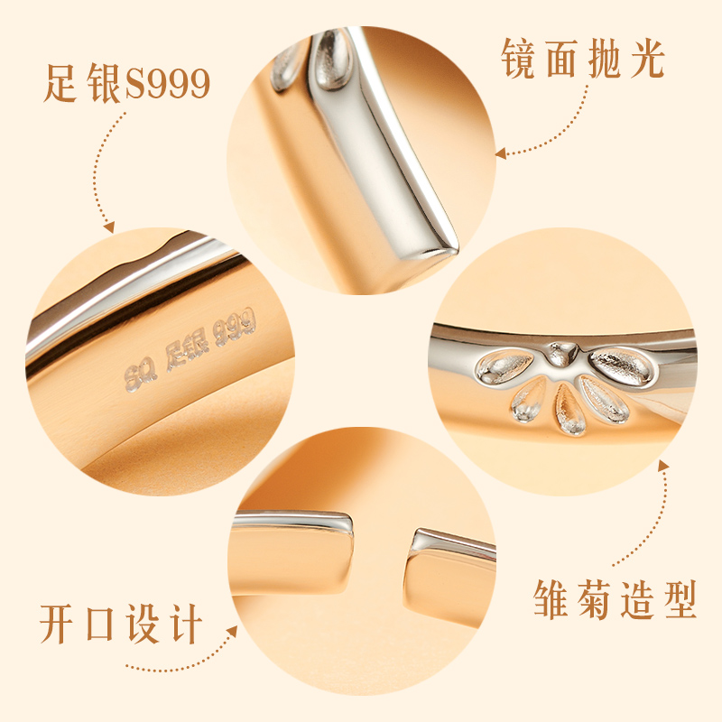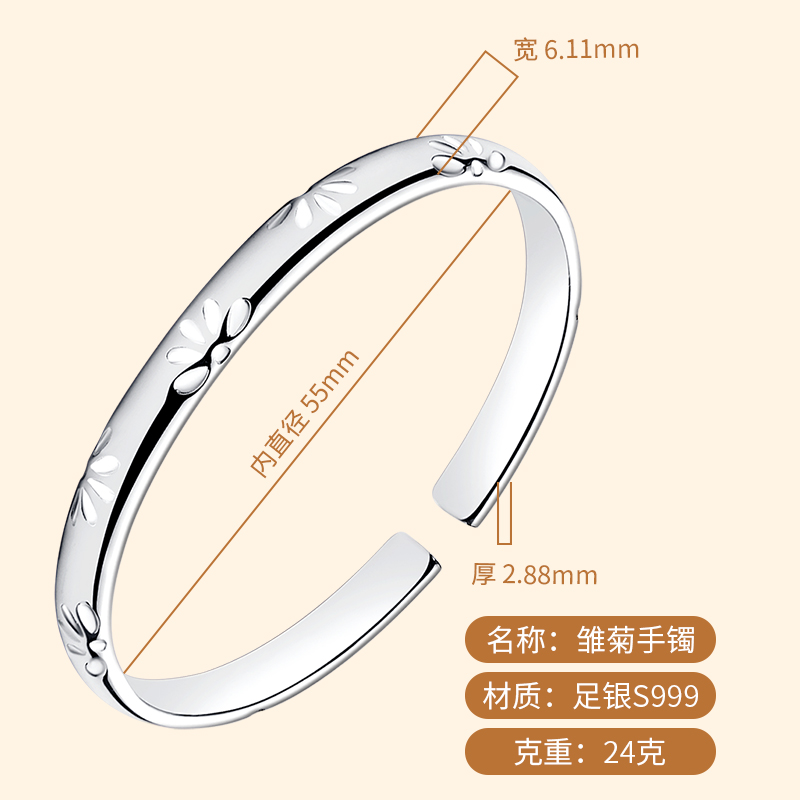 Shunqin silver building 999 foot silver bracelet open section daisy sterling silver bracelet female fashion silver jewelry to send girlfriend 520 gifts