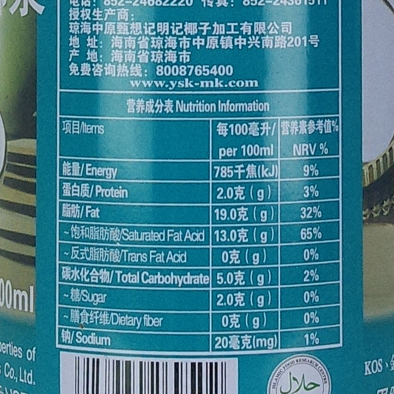 KOS Screen Gold Medal Up to 400ml*6 cans of coconut juice Simi Lu raw material for concentrated coconut baking