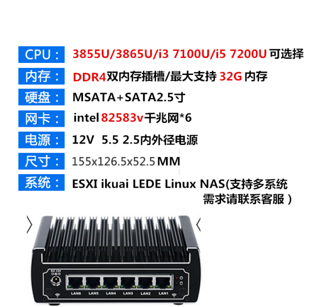 3865u 3865u i3-7100 i5-7200U6 one thousand trillion i5-7200U6 Internet interface nas soft routing mini-work control computer host Esxi