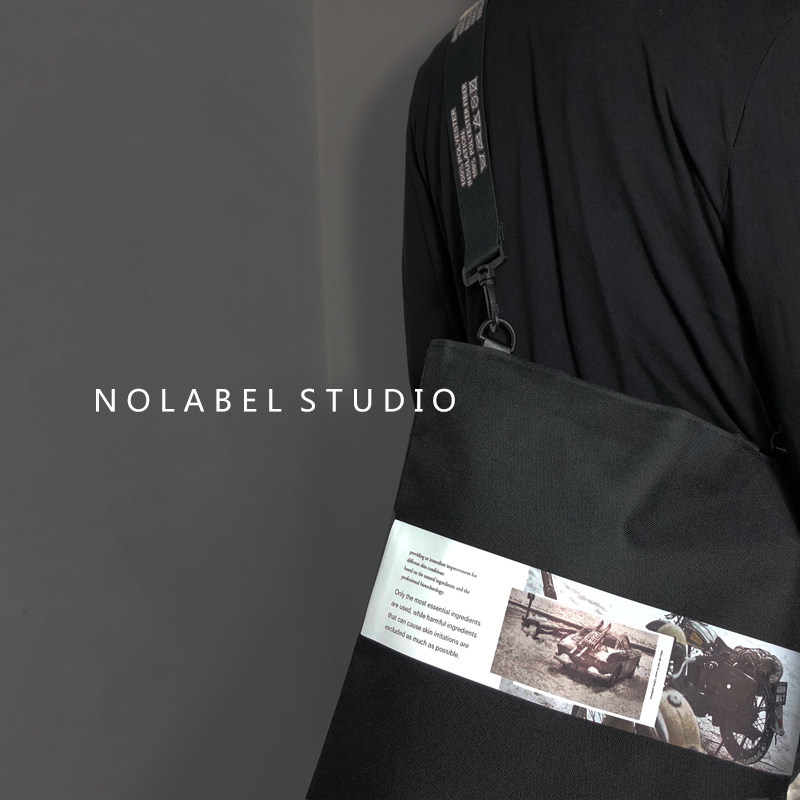 NOLABEEL SUPER-RUNNING ELEMENTS CUSTOM DESIGN DARK BLACK ENSEMBLE COARSE SHOULDER STRAP SUBS LARGE NUMBER PRINTED SKEW SATCHEL MEN AND WOMEN
