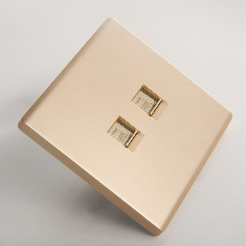 Type 86 Champagne Golden Double Mouth Internet Socket Panel Broadband Network Road Module Switch Socket panel Two computers