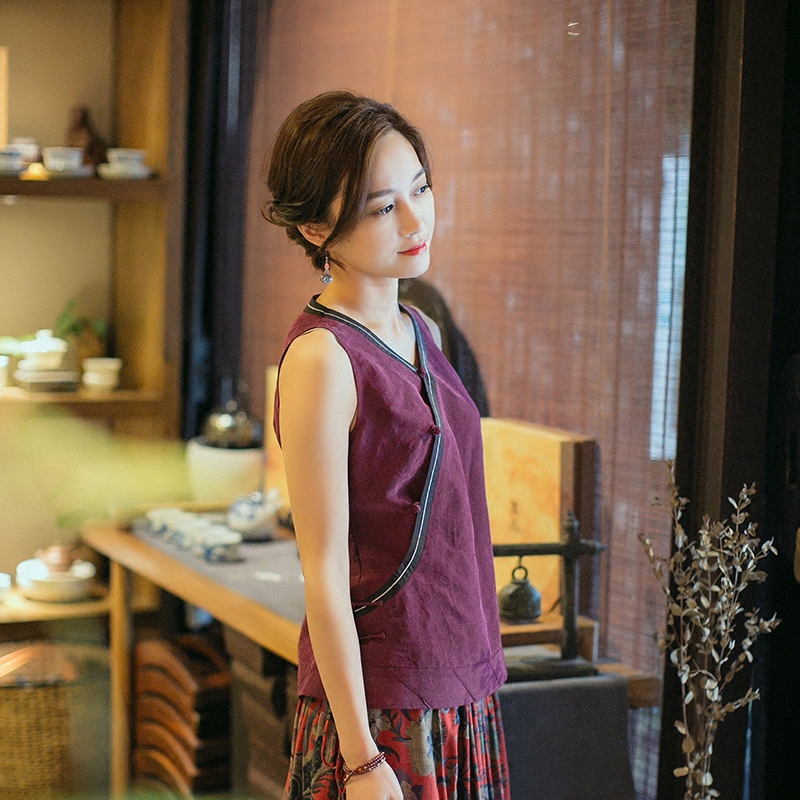 Zhu's Original (Mosentix) Summer New Tortoise Twine scent cloud yarn Garlic Button Sleeveless Vest V Collar Bottom Blouse Women