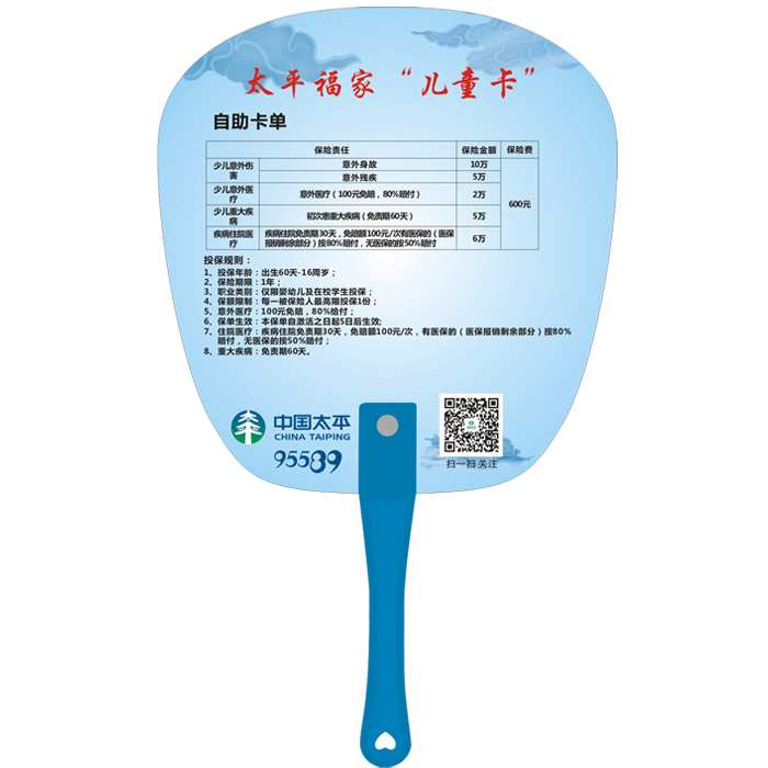 2018 China Taiping Life Insurance Gift Taiping Fujia Children's Card Fan Fans Advertising Small Fan