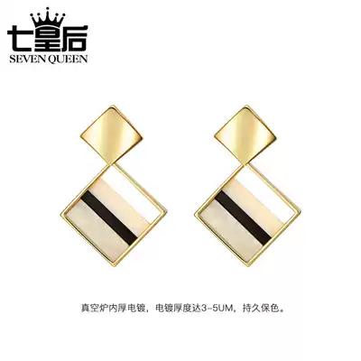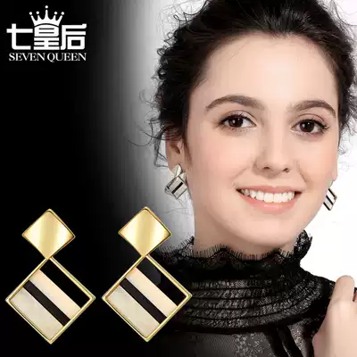 Square sea shell earrings female Korean temperament Joker diamond earrings simple personality hipster short geometric earrings