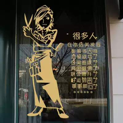 Personality hair stylist hairdresser shop window glass sliding door decoration sticker hair salon creative wall sticker painting