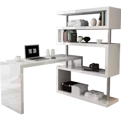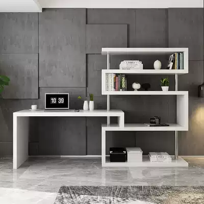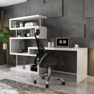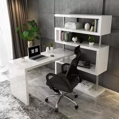 Simple bedroom rotating corner desk bookshelf bookcase integrated combination modern paint home computer desktop table