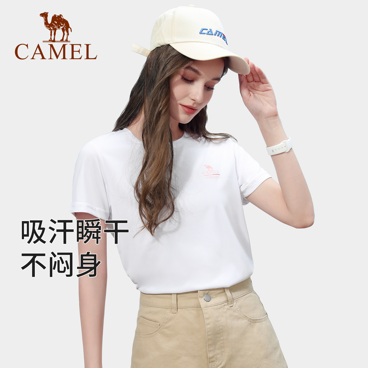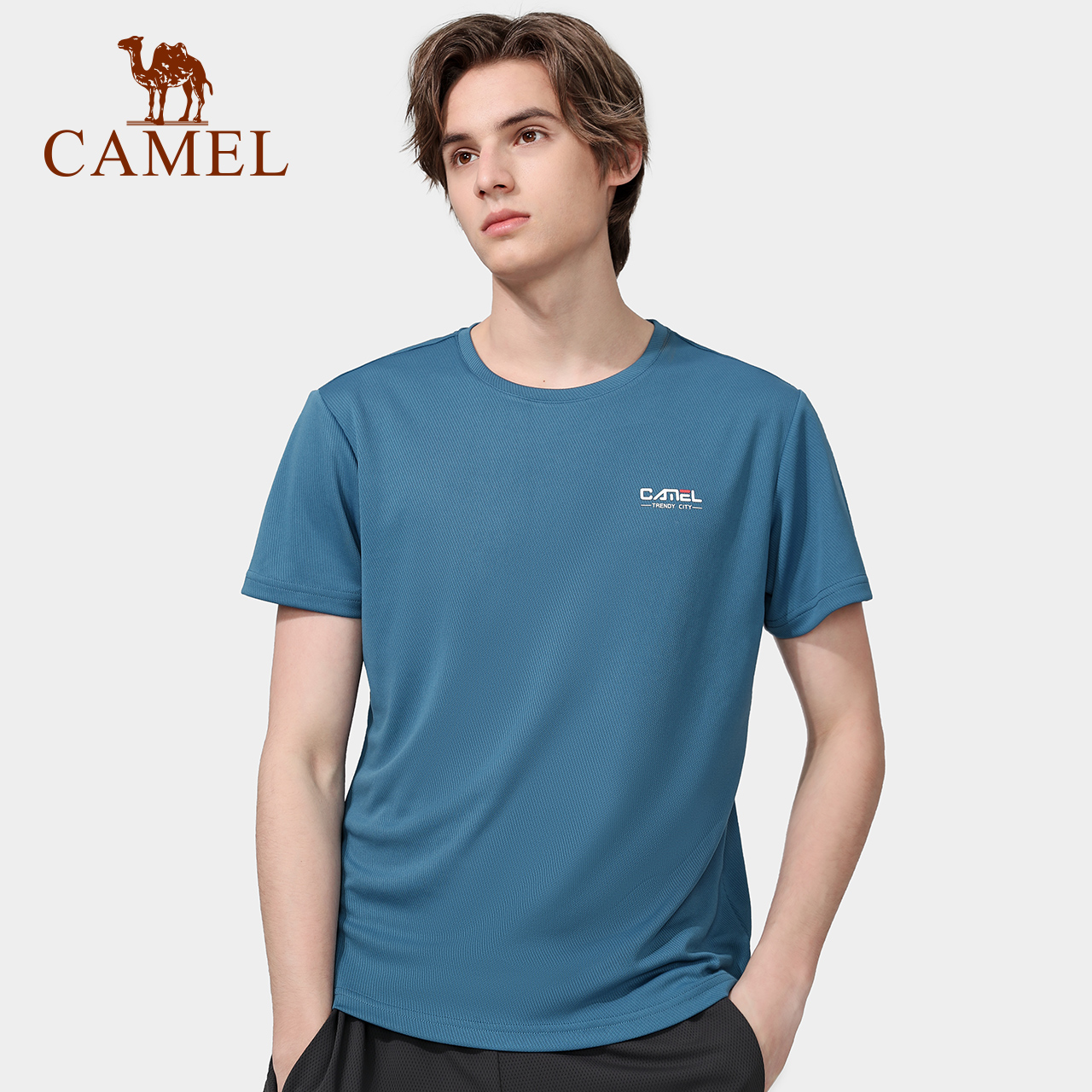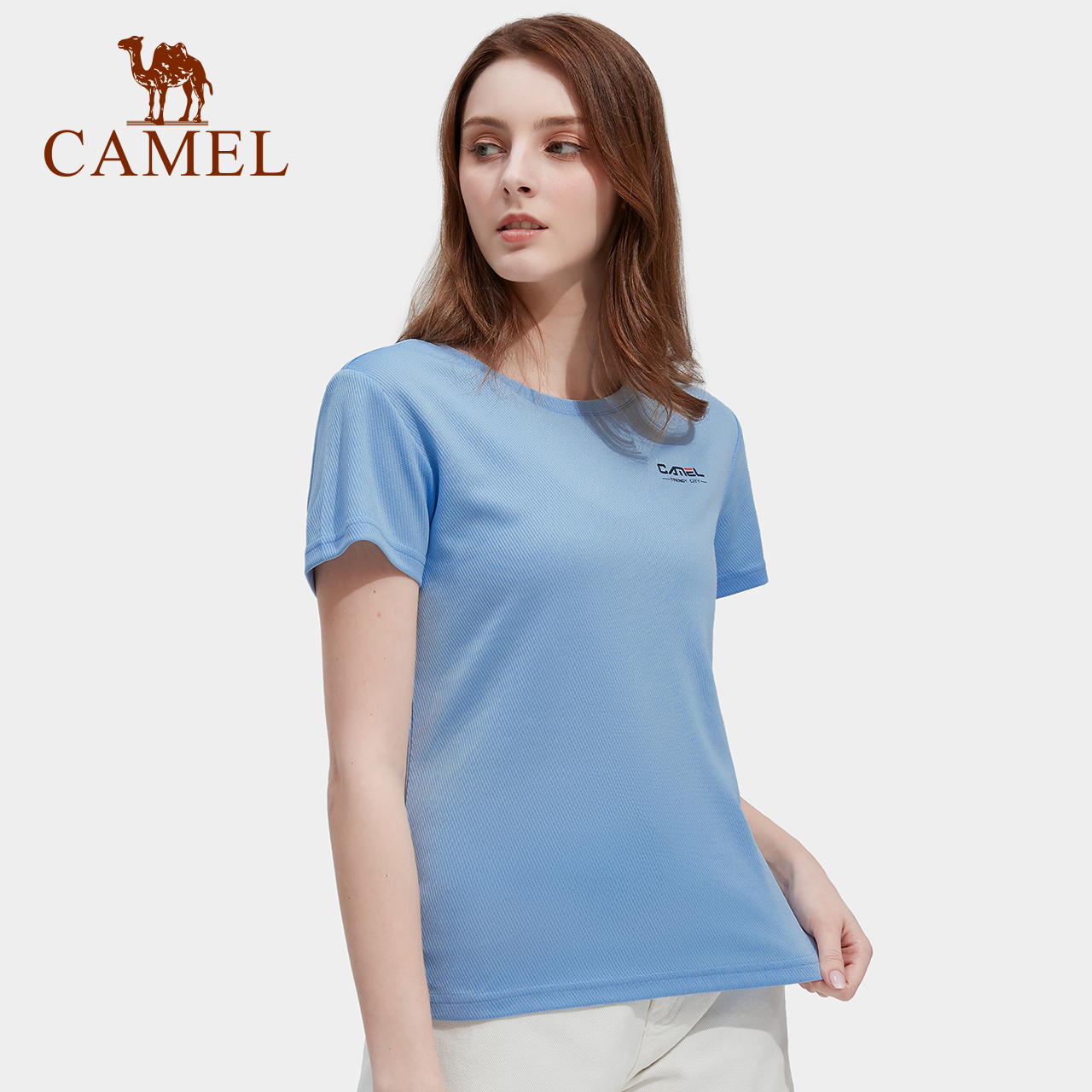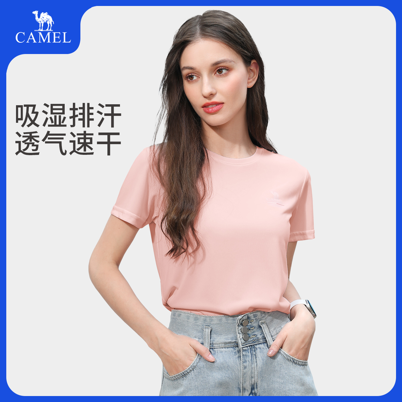 Camel outdoor sports speed dry T-shirt for men and women lovers' summer breathable pure color quick dry round collar short sleeve T-shirt blouse