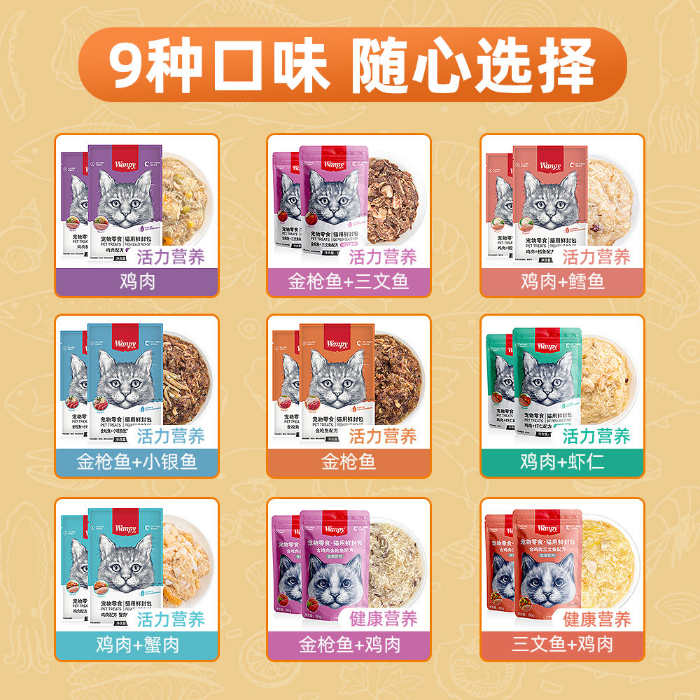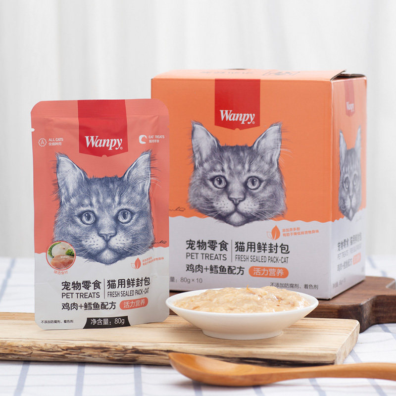 Kitty Snacks Naughty Fresh Enveloping Wanpy Fresh Cat Canned Nutrition Wet Grain Strips Blue Cat Kitty Young Cat 3 Months Old.