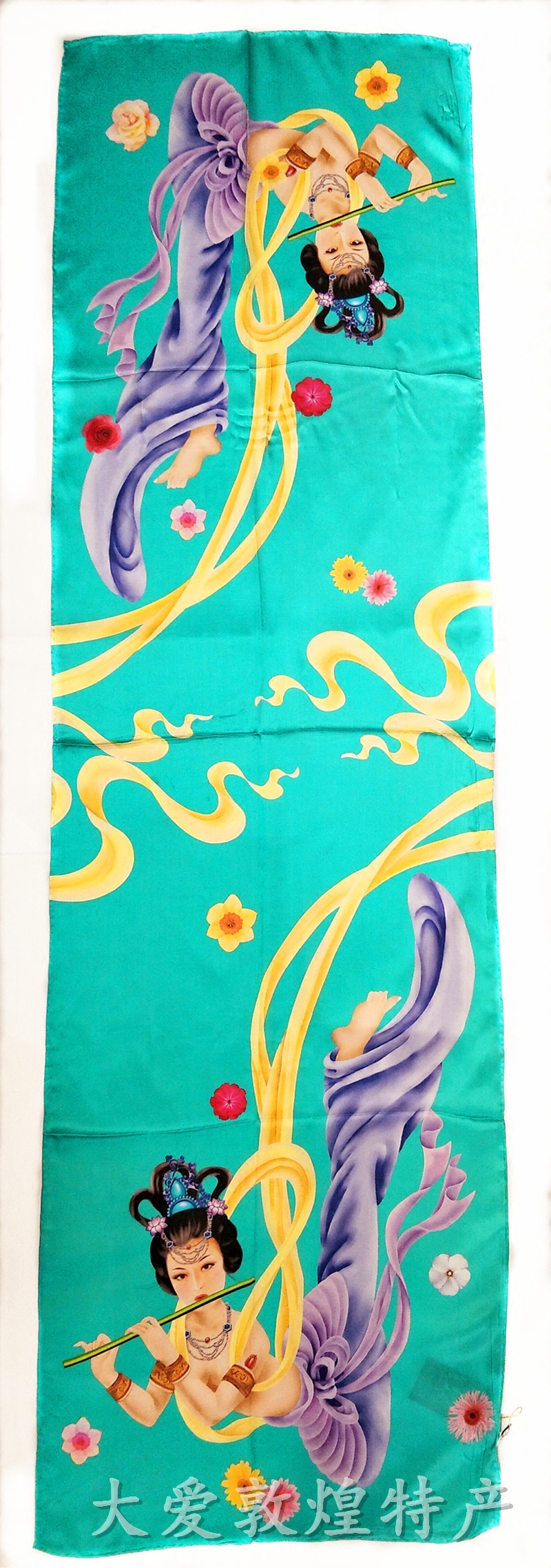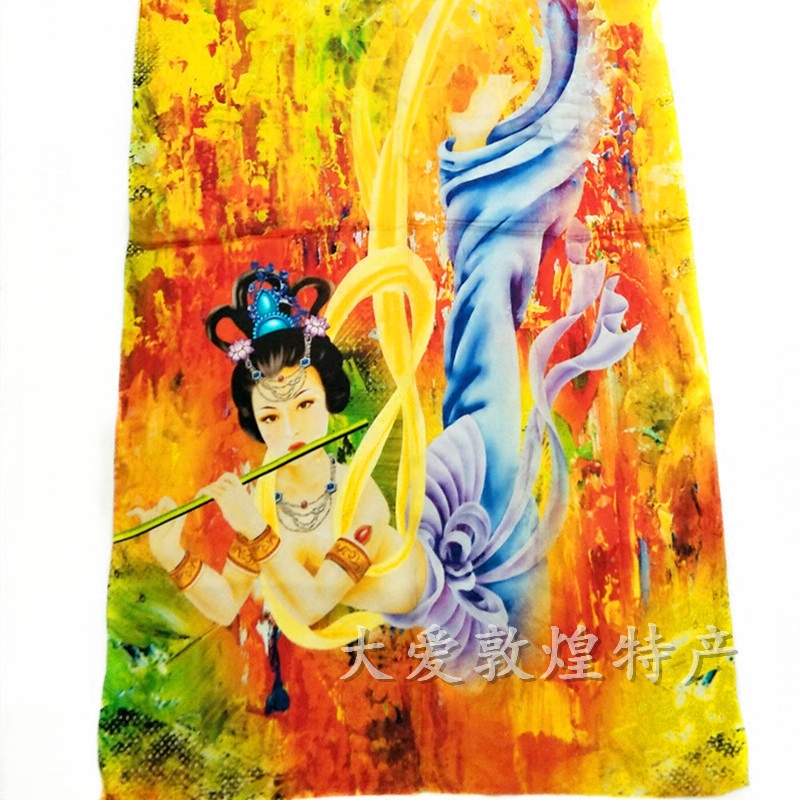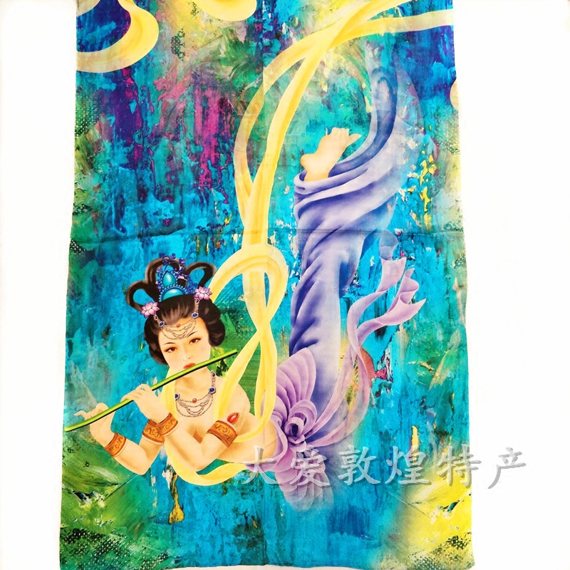 Dunhuang Murals Real Silk Scarves Mogao Caves Flying Sky and Women's Long version of mulberry silk scarves The Beatles Tourist Remembrance
