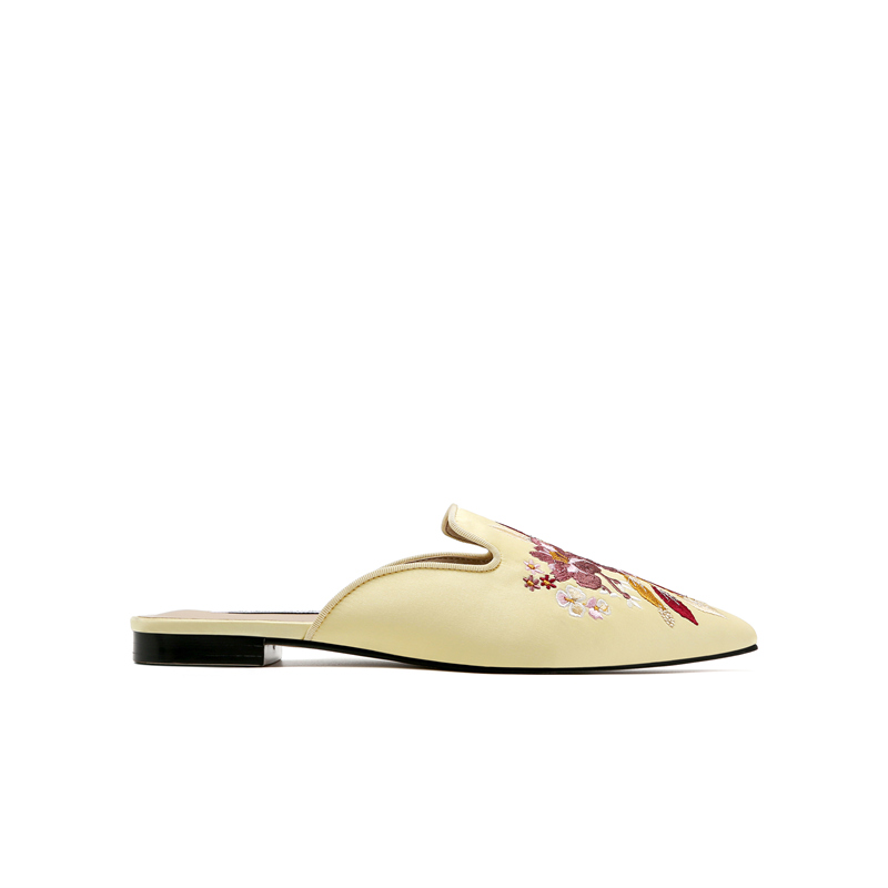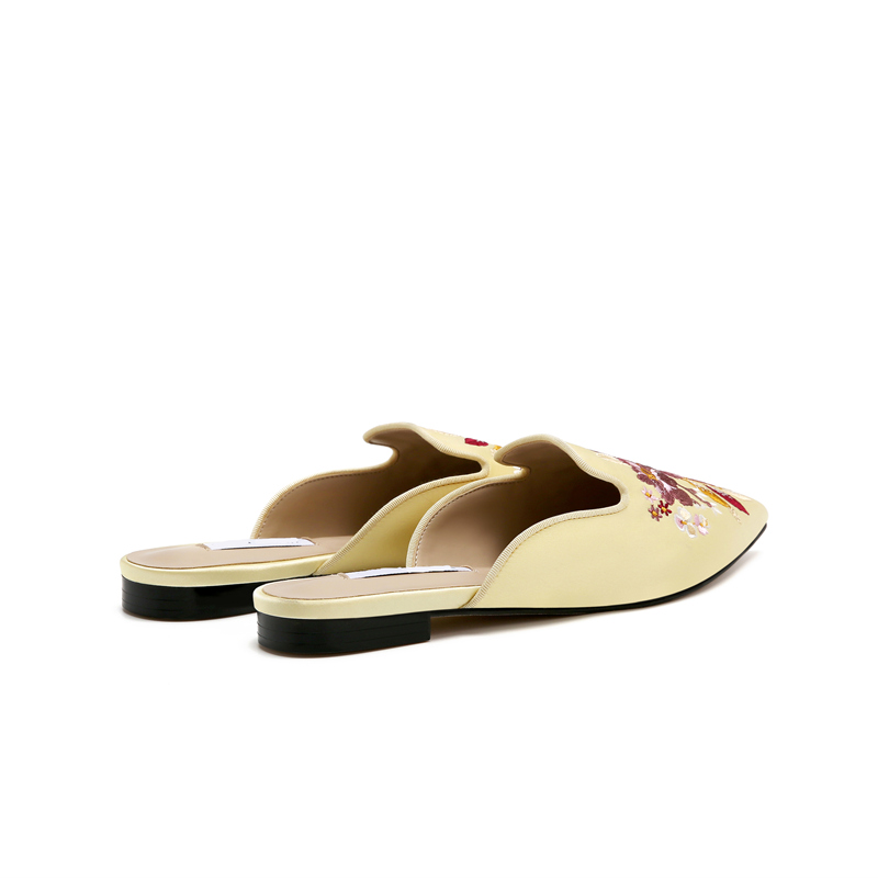 2022 spring and summer new sandals and half slippers female Muller slippers Baotou slippers classical embroidery flower pointed low heels