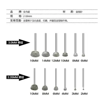 Diamond grinding needle E-type pressure lump emery grinding head Jade Jade amber agate peeling grinding carving tool