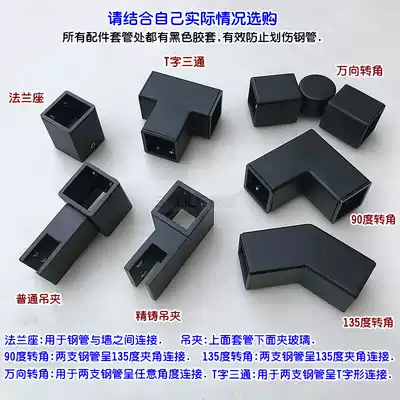 Matte black 304 stainless steel sleeve 25 square tube shower room anti-pendulum fixed rod connector Flange wall sleeve hanging clip