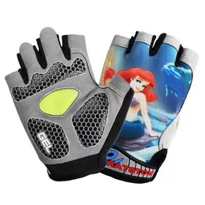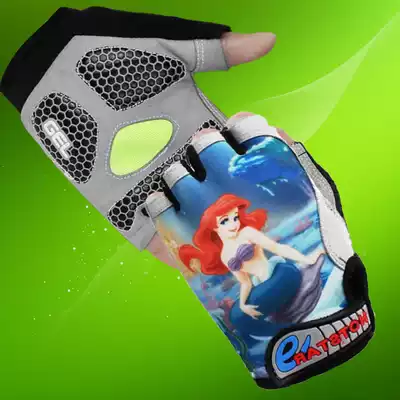 Children's gloves thin anti-fall wear-resistant cycling girl half-finger elasticity student sunscreen mountaineer Ditoni Mermaid