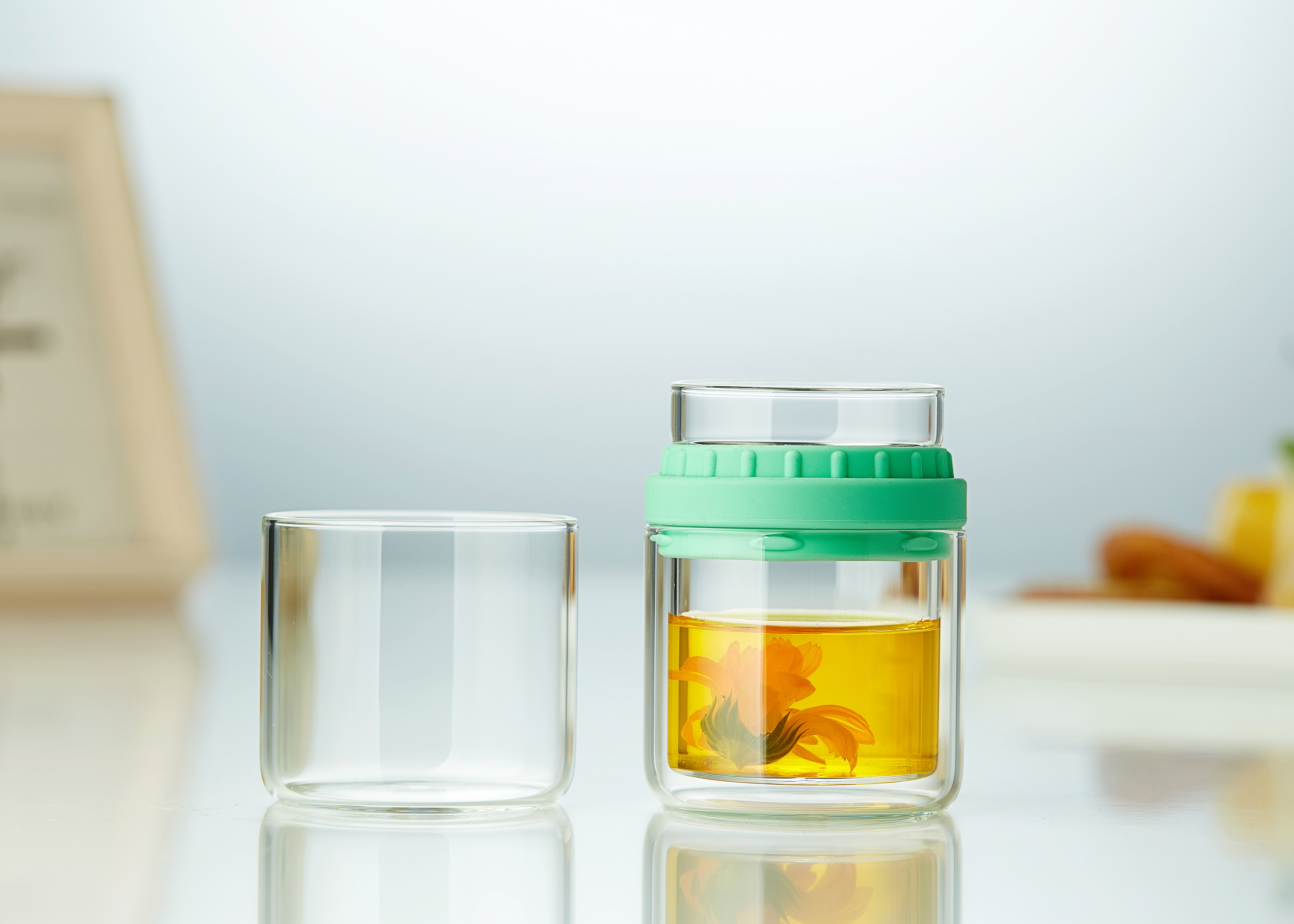 Xinfeu Handmade Kung Fu Three Cups Travel Cup Built Tea Cup Thick Heat-resistant Glass Filter Cup Express Cup