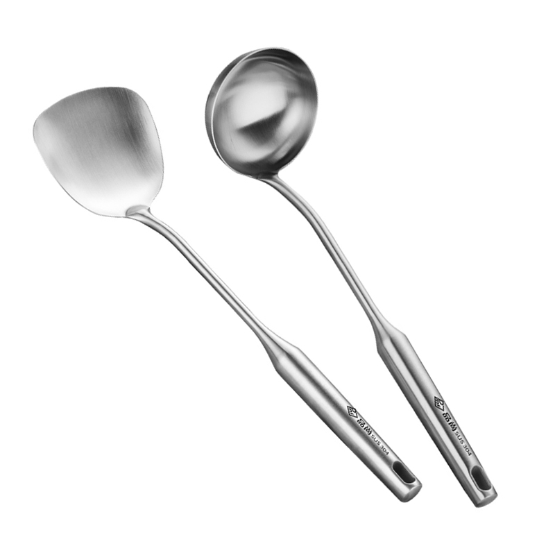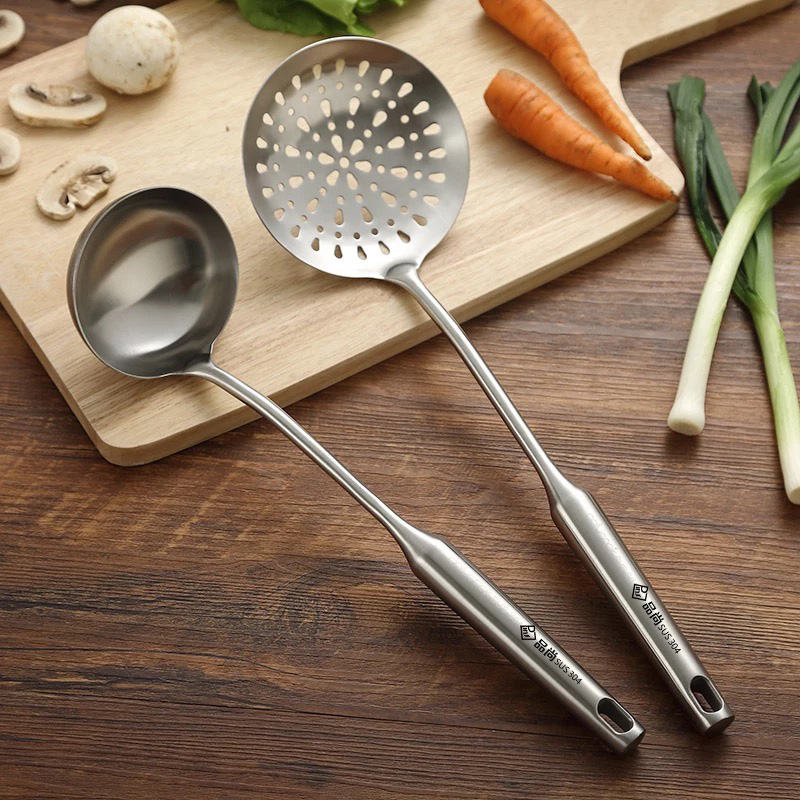 Thickened 304 stainless steel spatula spatula spoon 2-piece kitchenware stir-fry shovel Stir-fry spoon colander one-piece shovel Soup spoon Insulation