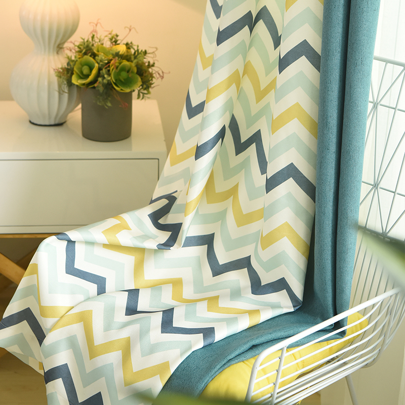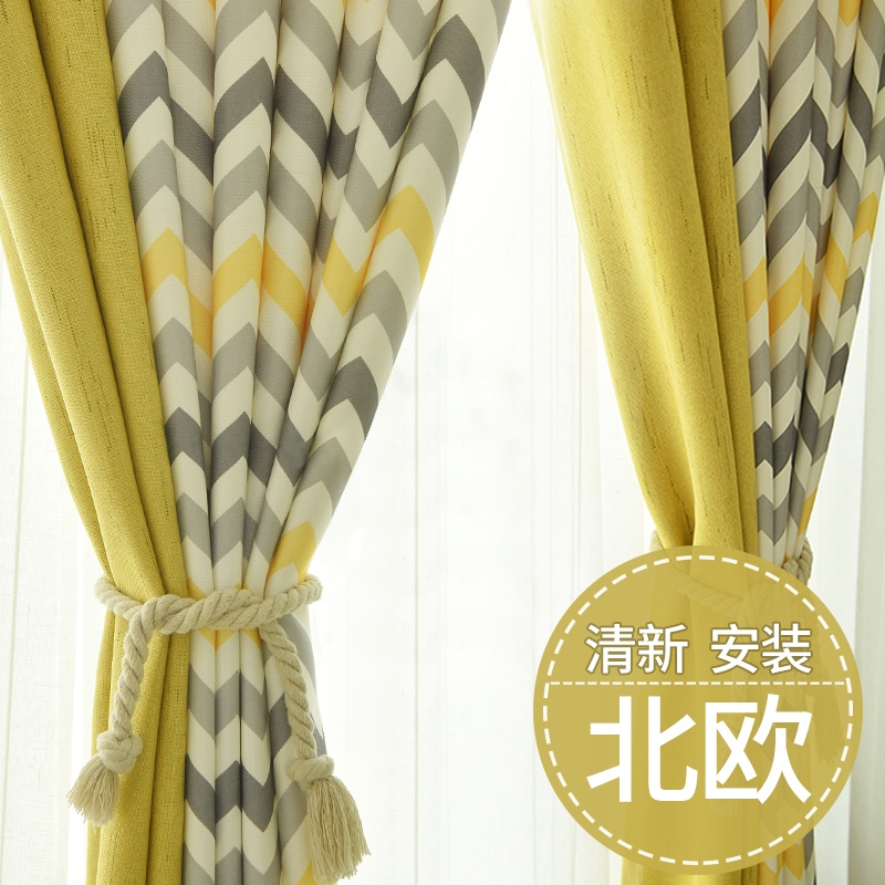 Curtain Nordic Minimalist Yellow Nordic Wind Splicing Cotton Lins Light Lavish Modern Living-room Bedroom Window Blinds Shade