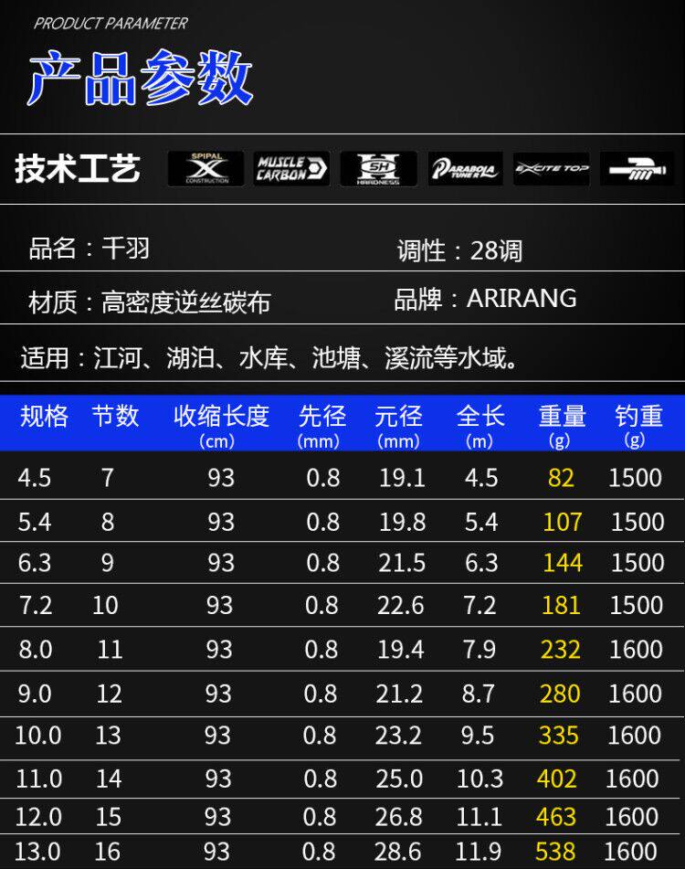 Qianyu 10 meters first three section hard tip gift package Qianyu 13 meters first three section hard tip gift package thousand feather 8 meters first three section hard tip gift package thousand feather 9 meters first three section hard tip gift package thousand feather