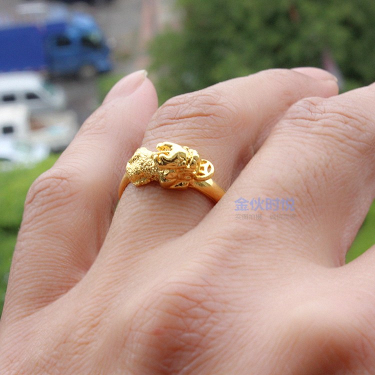 Just can't get into the chaise, the ring plated gold doesn't fall off the gold and the men and women opening the sand gold ring.