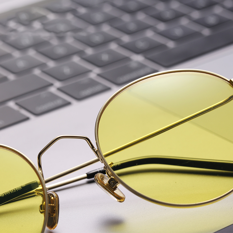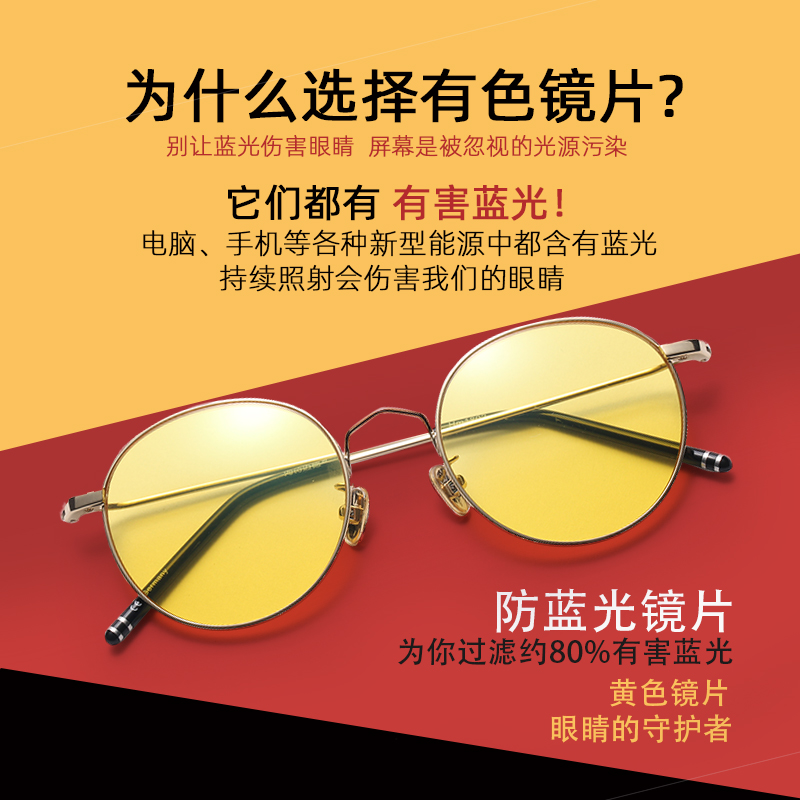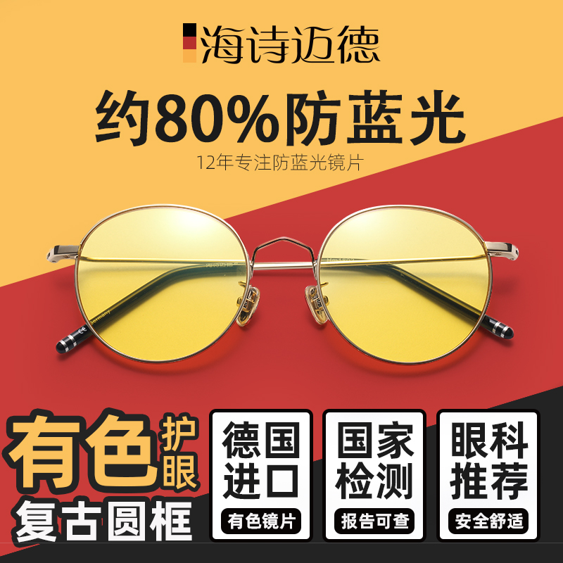 Hishimed metal round frame student anti-blue light glasses men and women fashion retro online class goggles imported lenses