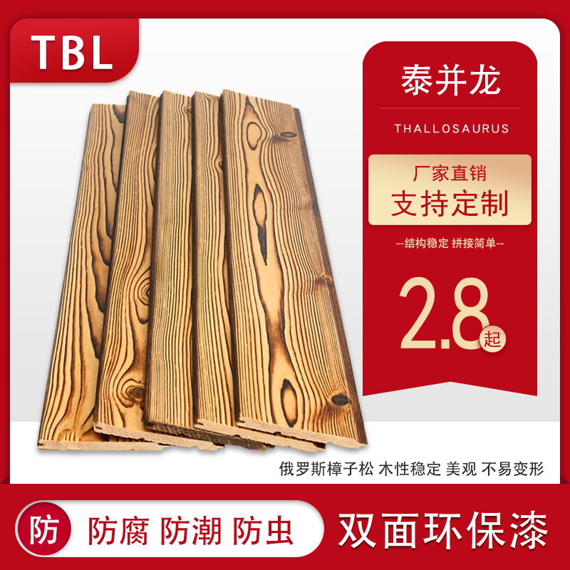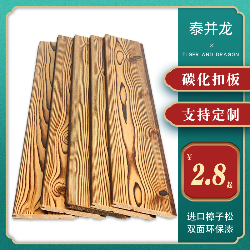 Wooden house deep carbonized wood suspended ceiling Outdoor paint-free floor Wall skirt Sauna board Anti-corrosion light color gusset engraved fire
