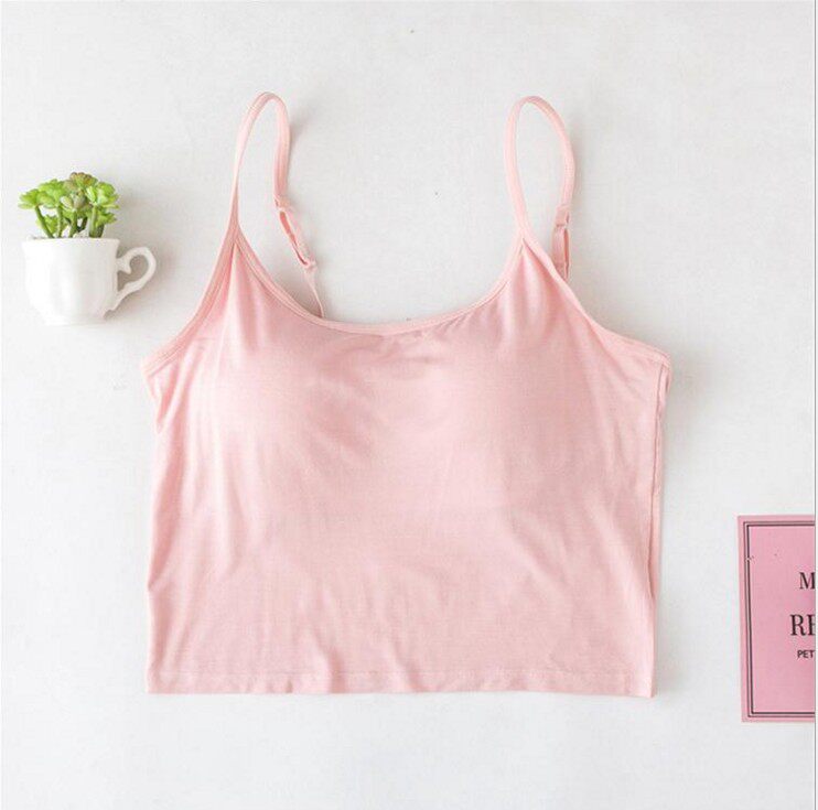 Short camisole female modal inner strap chest pad exposed navel wear-free bra cup integrated chest underwear summer