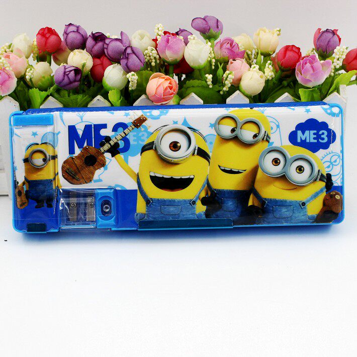 Double sided with knife pencil case multifunction elementary school children plastic child leather face lead pencil case study stationery