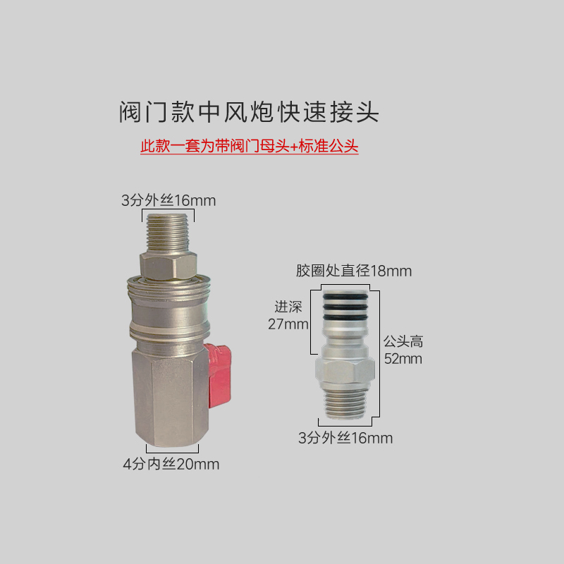 With valve large and medium-sized wind gun quickly connects one mother three-axle valve gun 20mm with valve stroke gun quickly outer wire 16mm with valve wind gun quickly outer wire 13mm alloy wind