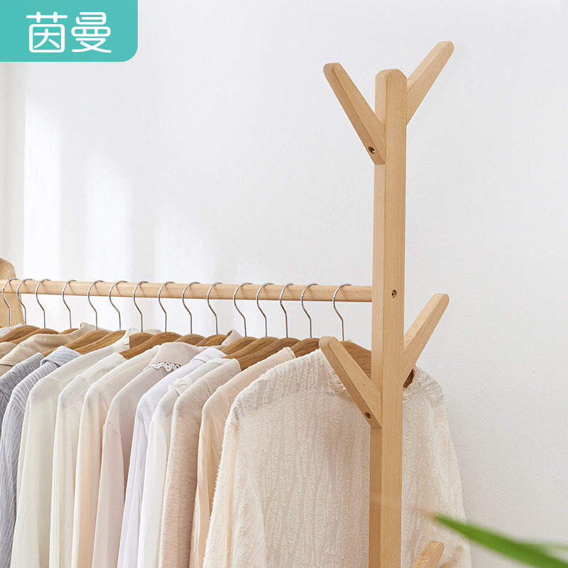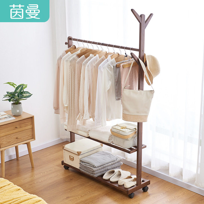 Inman Solid Wood Hanging Frame Bedroom Hanging Household Multi-functional Mobile Tree Cloth Shelf