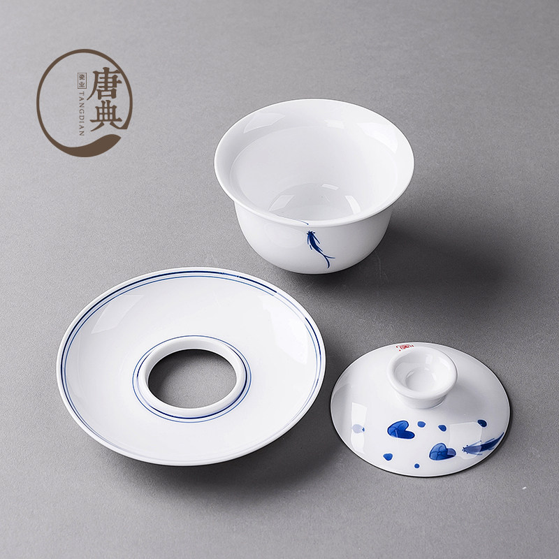 Tang Dian Jingdezhen hand-painted small fish blue and white porcelain tea set Gongfu tea set White porcelain hand-painted tea set