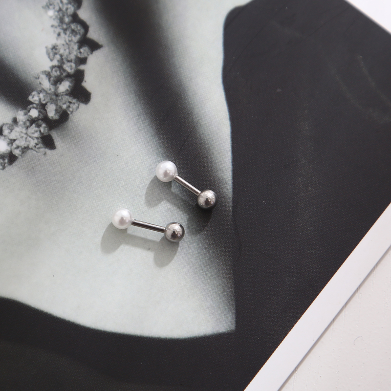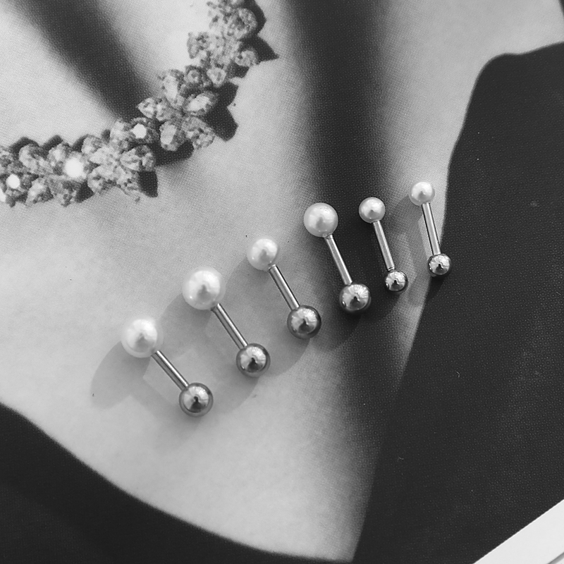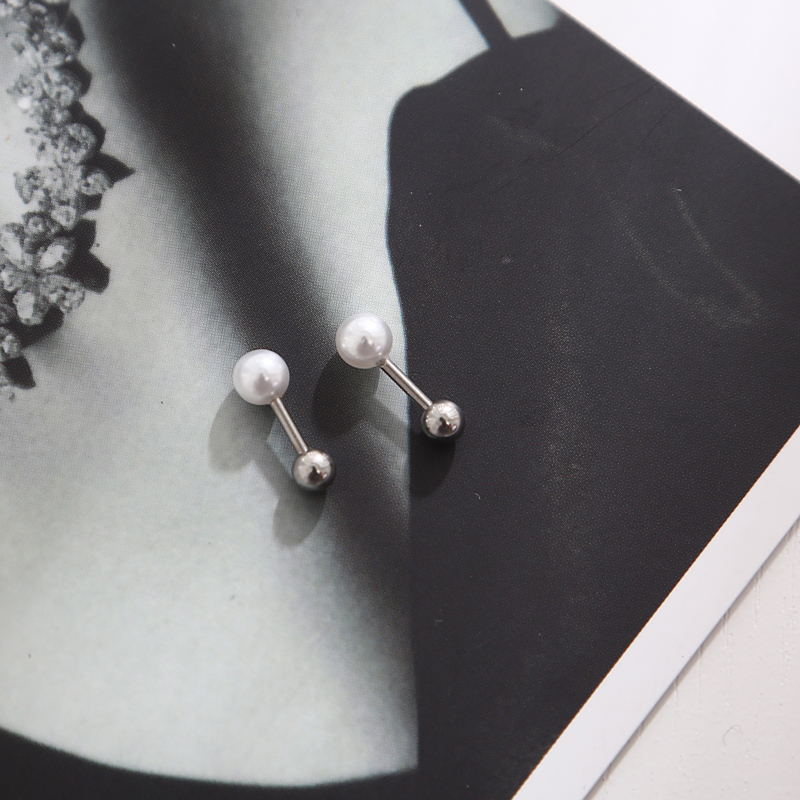 South Korean minimalist size pearl screw buckle ear needle medical non-fading titanium steel earring earring anti-allergy ear