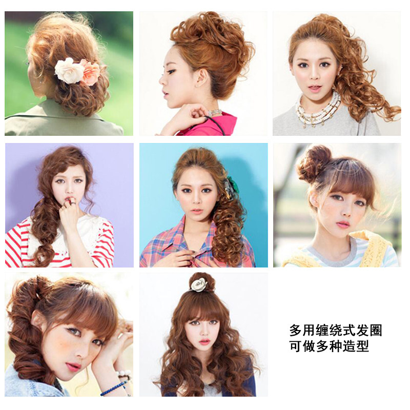 Wig headdress caterpillar wig curly hair pan head braid winding hair ring meatball head pan hair set hair bag female