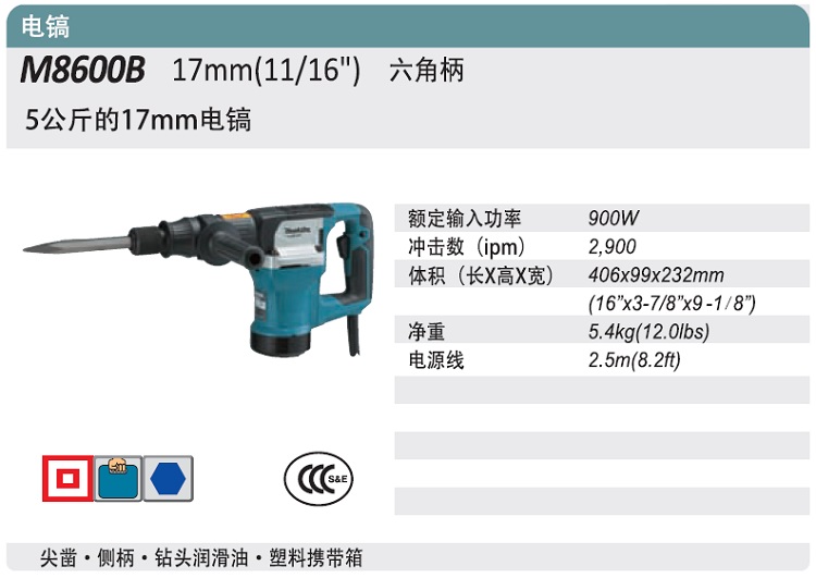 Pasta Electric Pick M8600B Industrial Grade Electric Pick High Power Home Slotted Broken Wall Chipping Electric Shovel Type Electric Hammer Drill Pick