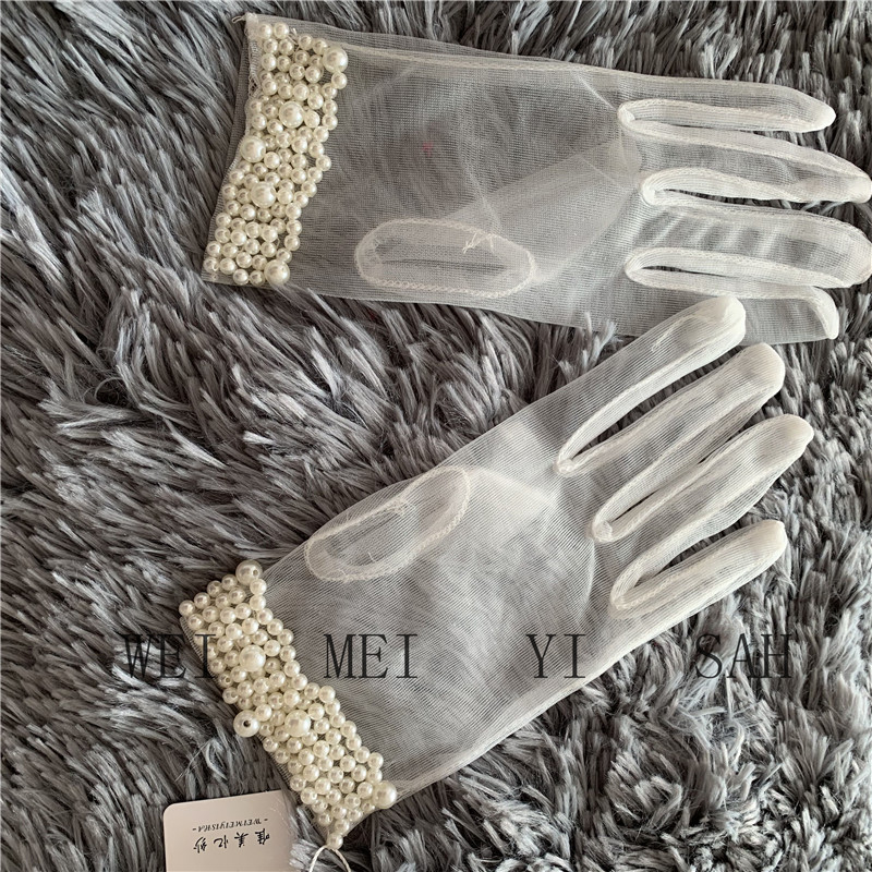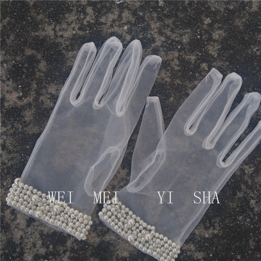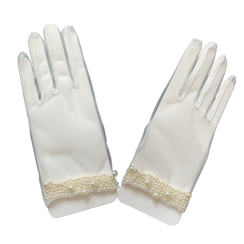New hand-sewn bead wedding gloves High quality wedding bridal gloves simple short photo hand yarn