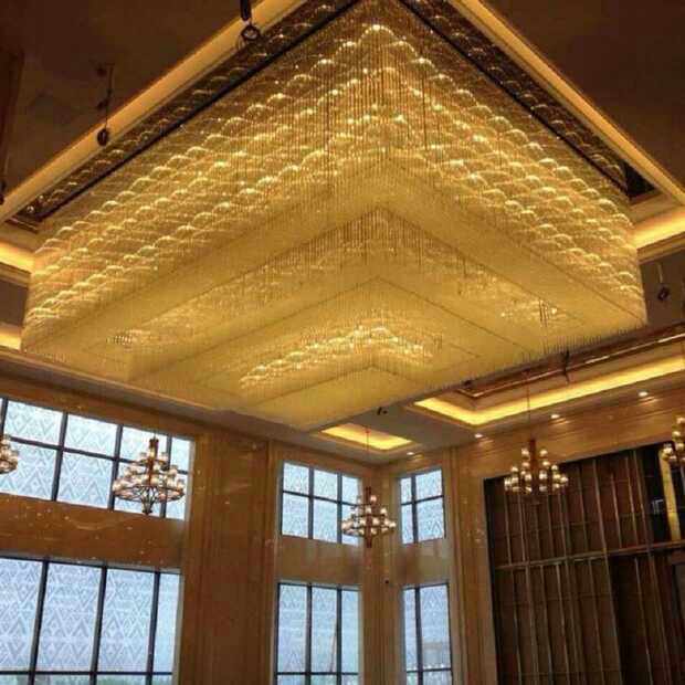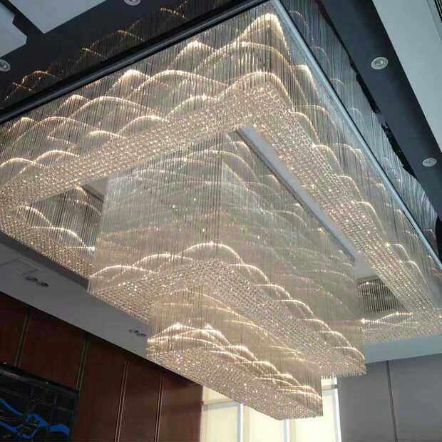 Customized large hotel engineering crystal lamp villa sample house display centerlampLightroom rectangular LED ceiling lamp